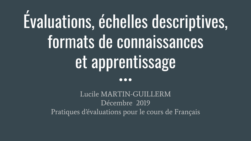 Évaluations, échelles descriptives, formats de connaissances et apprentissage Lucile MARTIN-GUILLERM Décembre 2019 Pratiques d’évaluations pour le cours de Français