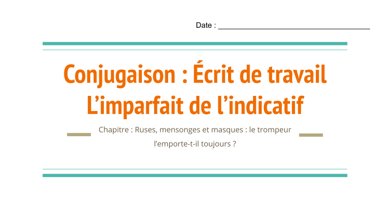 Conjugaison : Écrit de travail L’imparfait de l’indicatif Chapitre : Ruses, mensonges et masques : le trompeur l’emporte-t-il toujours ? Date : ____________________________________
